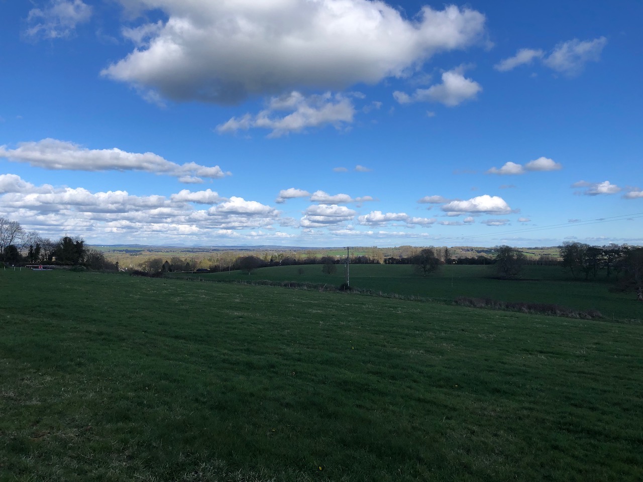The gradient eases as the road continues upwards in a series of steps. A slanted T-junction announces the final push — beware of vehicles coming from the right as you swing left around the bend — before the long drag to the top of the hill. Houses and neat hedges give way to pasture on the left and the edge of Saggart woods on the right, with the N81 trailing away down below. At the top, enjoy the sweeping vista of the mountains to the east and flat lands to the west, the Slieve Blooms barely breaking the horizon.